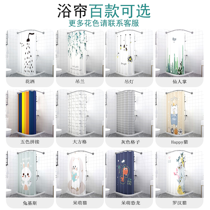 Shower curtain set punch-free bathroom curved rod shower powder room U-shaped bath tarpaulin L-shaped partition hanging curtain
