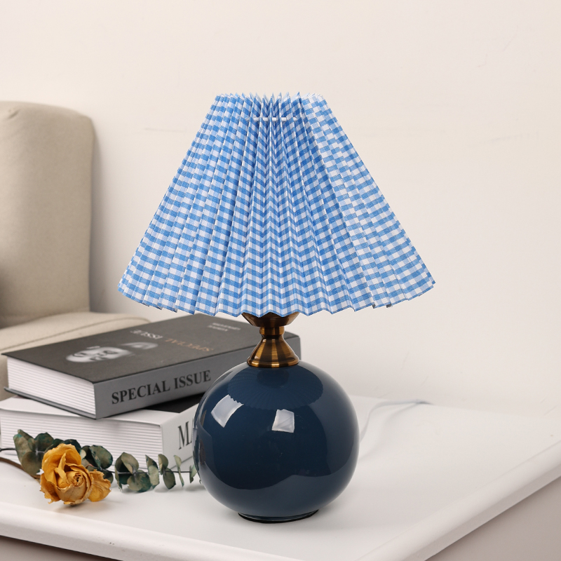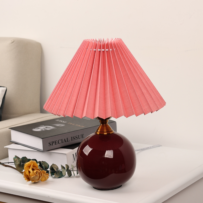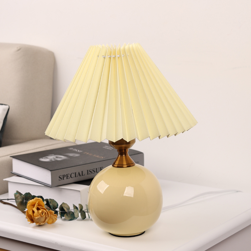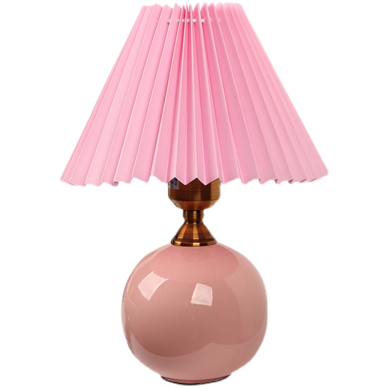 Nordic ins creative small desk lamp pleated fabric retro ceramic net red warm decoration simple bedroom bedside lamp