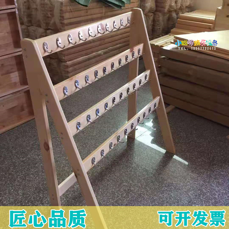 Kindergarten solid wood towel rack Children's removable log wood camphor pine towel rack detachable factory direct sales