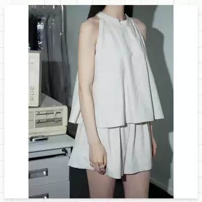 (FARM) flaxen temperament thin casual sleeveless vest high waist shorts texture set 2021 spot