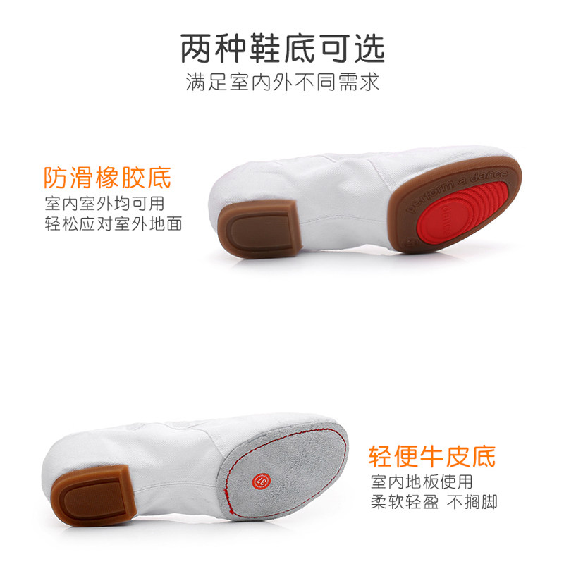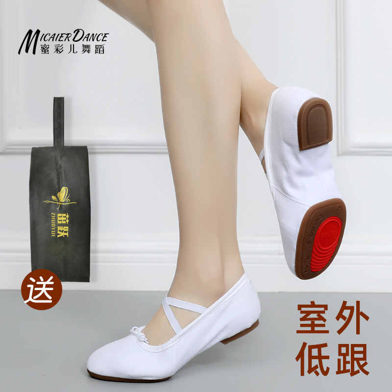 Adult white dance shoes women's soft-soled exercise shoes mid-heel belly dance shoes canvas teacher shoelaces and folk dance shoes