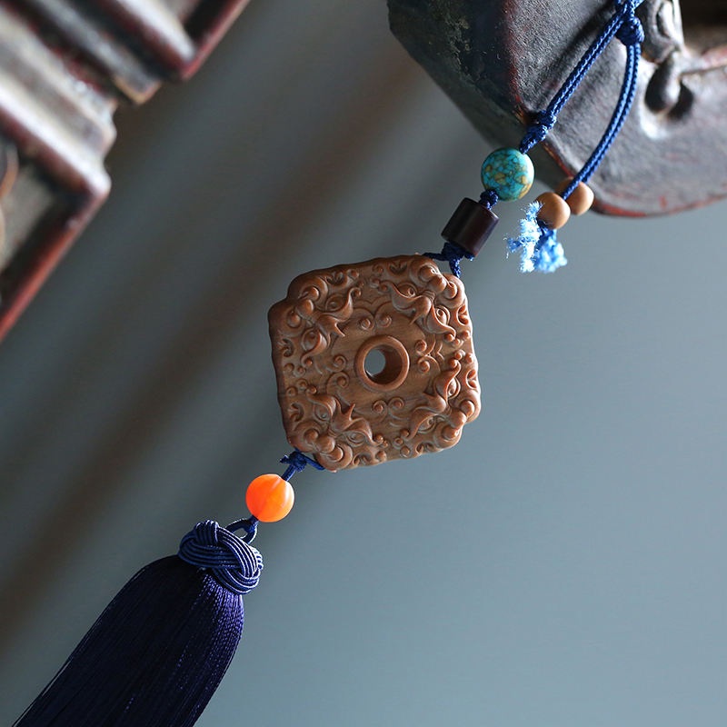 Quadrilateral Hospitality India Old Mountain Honolulu Pendant Sandalwood Carve Hung Red Wooden Men and Men Pendant Gifts 0894
