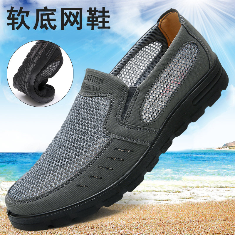 Men's mesh shoes summer 2022 old Beijing cloth shoes middle-aged and elderly soft bottom breathable non-slip elderly casual mesh men's shoes