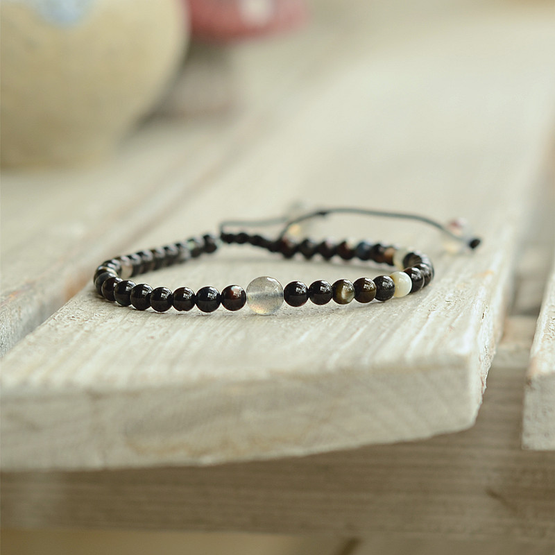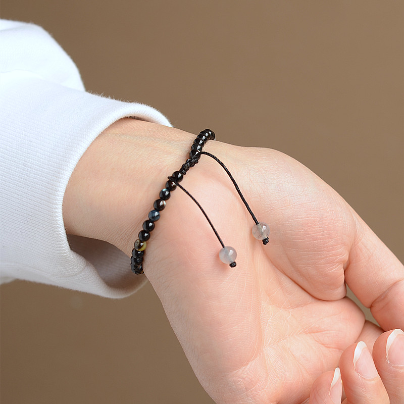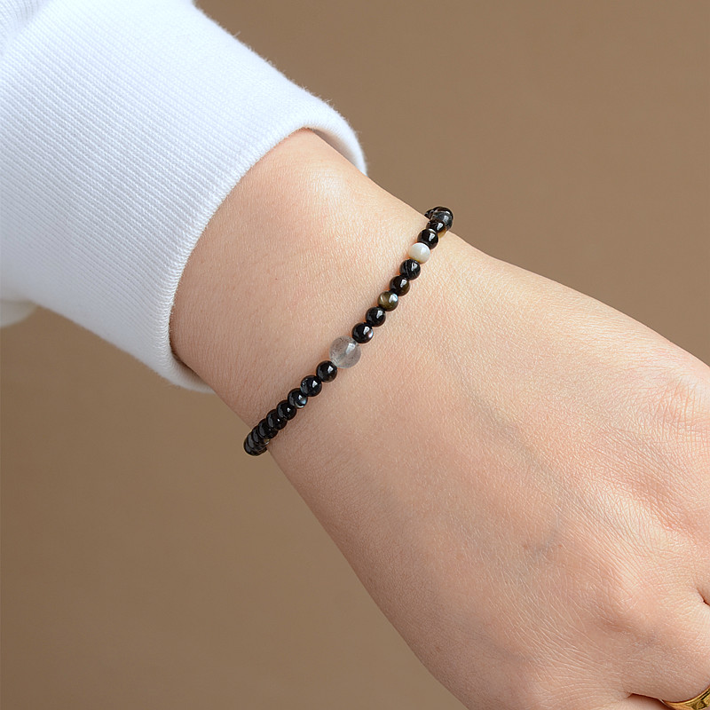 Original black shell hand-woven moonstone crystal student men's and women's birthday gift couple's hand bracelet