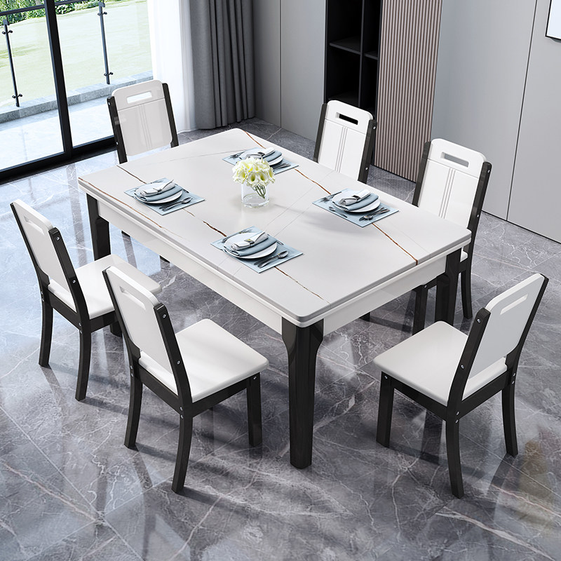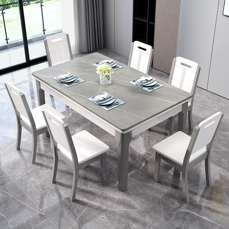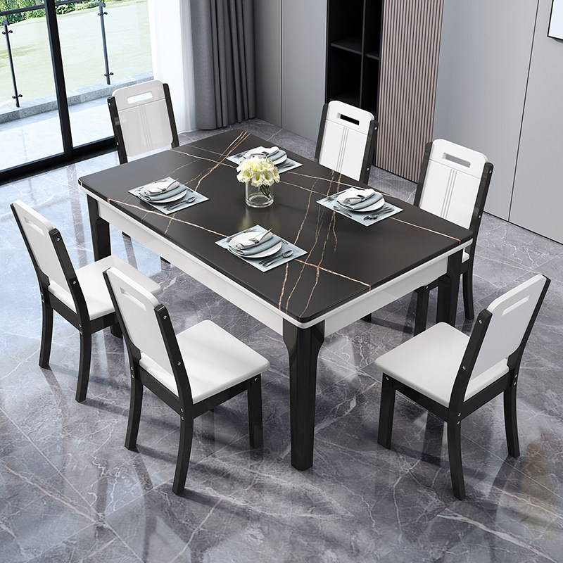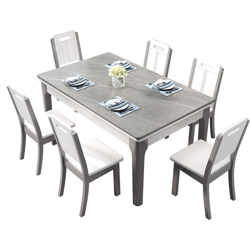 Rock plate table and chair combined modern simple and light luxury small household rectangular household with solid wood to eat table 8 people