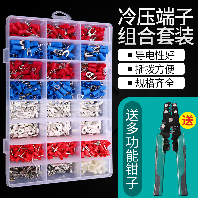 Full series of cold-pressed terminal joint set of tube insulated fork-shaped O-type spring interface to copper terminal