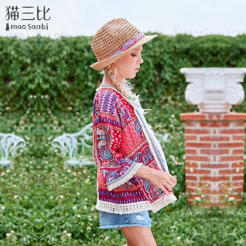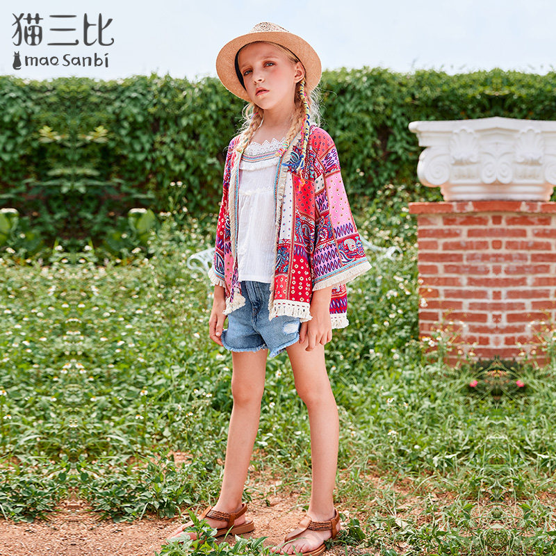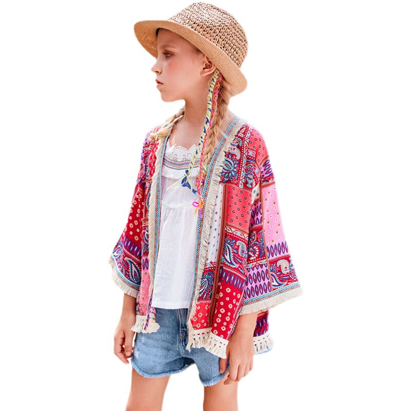 Girl Sunscreen Sweatshirt Summer 2022 Bohemian Holidays Children's Coat Thin out of the middle of the Child Exterior Lap Shawl