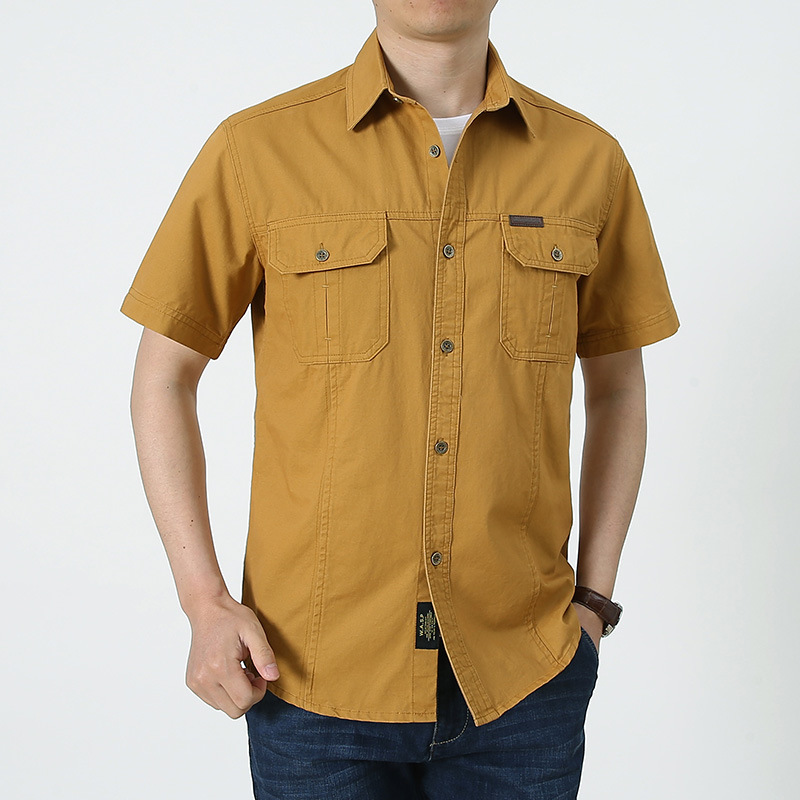 Cotton men's Oxford spinning shirt men's short-sleeved summer thin section clothes tactical army fan tooling casual shirt men