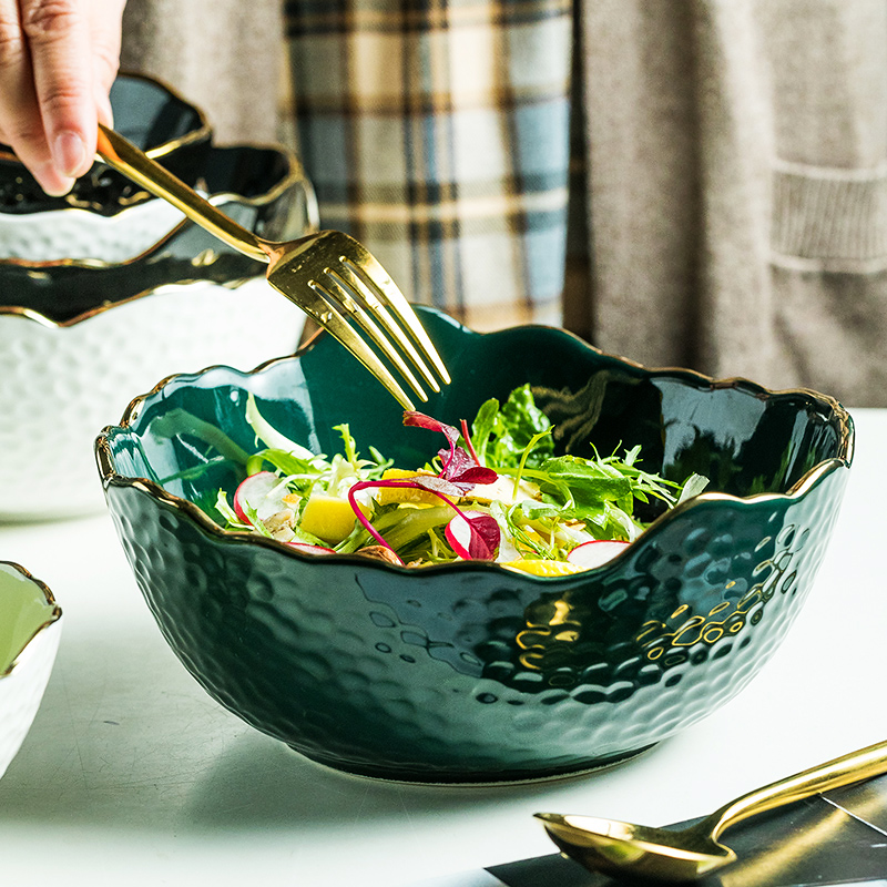 Salad Bowl Home ceramic Big soup bowl High temperature resistant Han version ins Wind single large noodle bowl Bowl Fruit Bowl Sweet Bowl