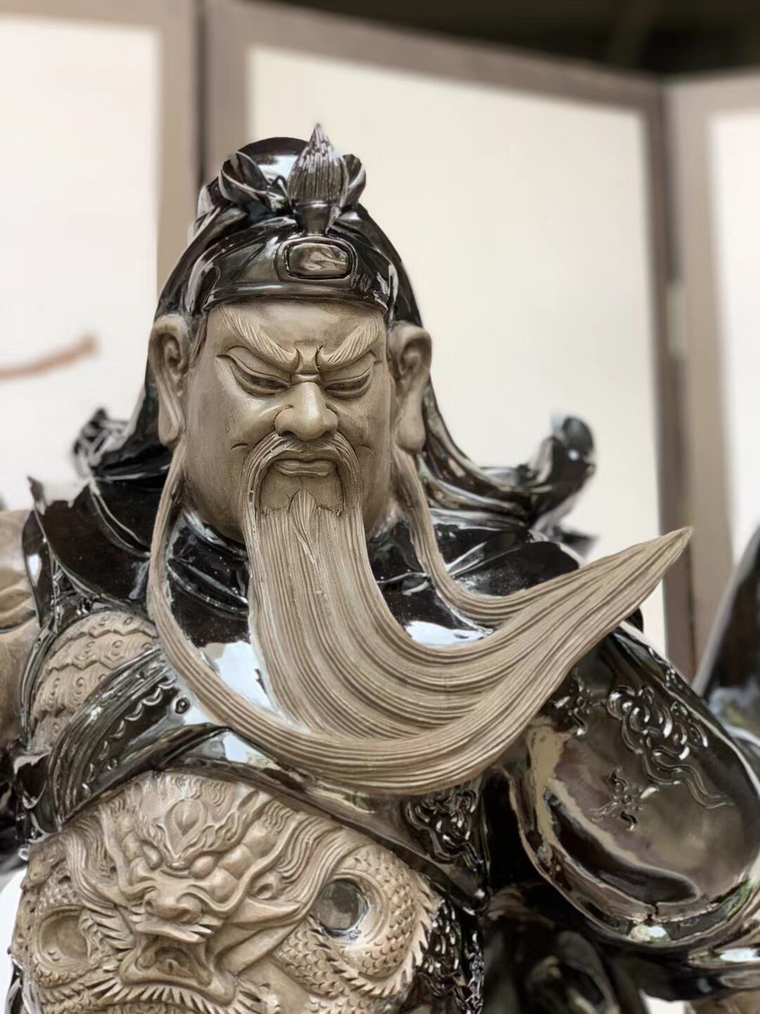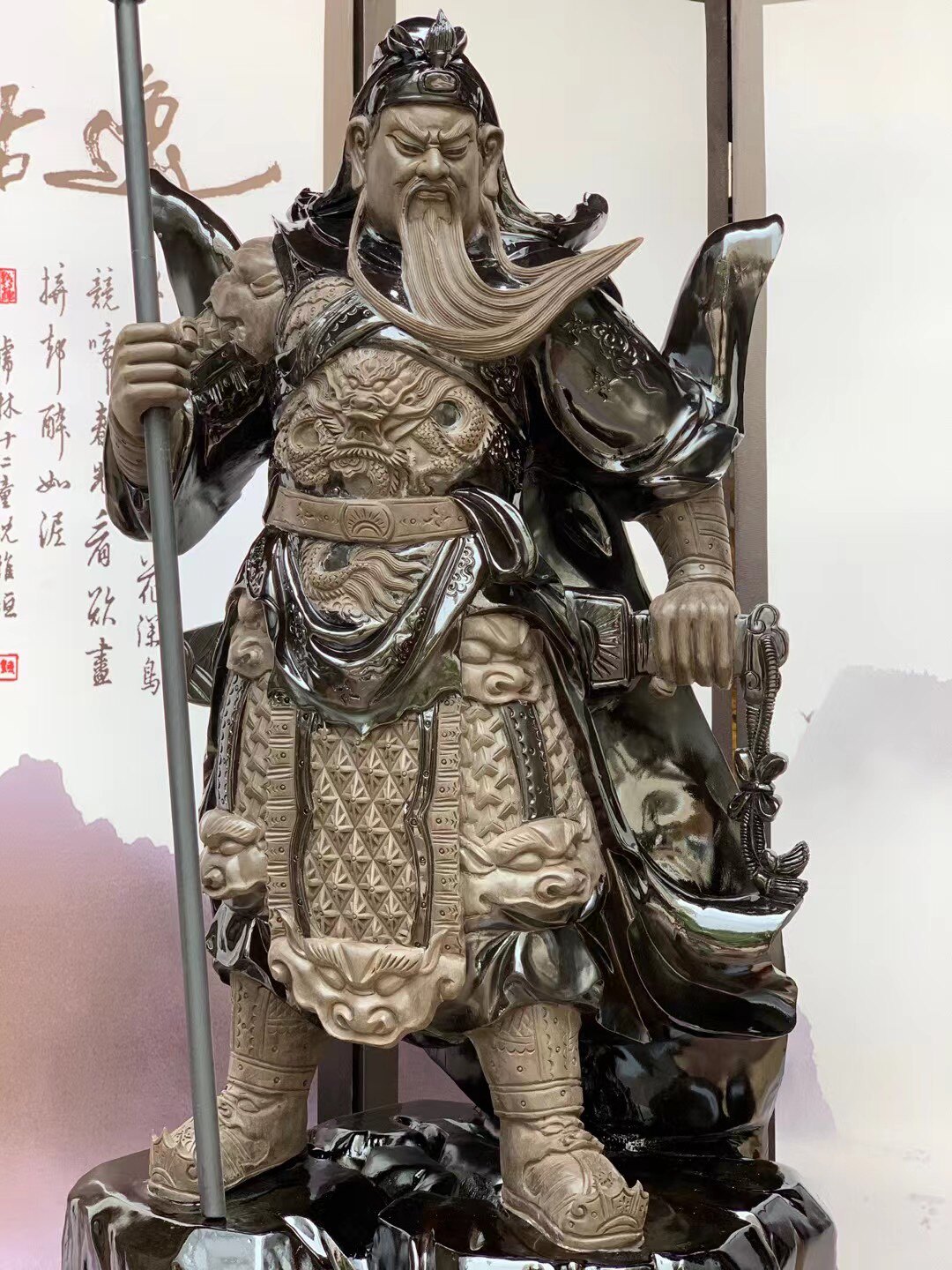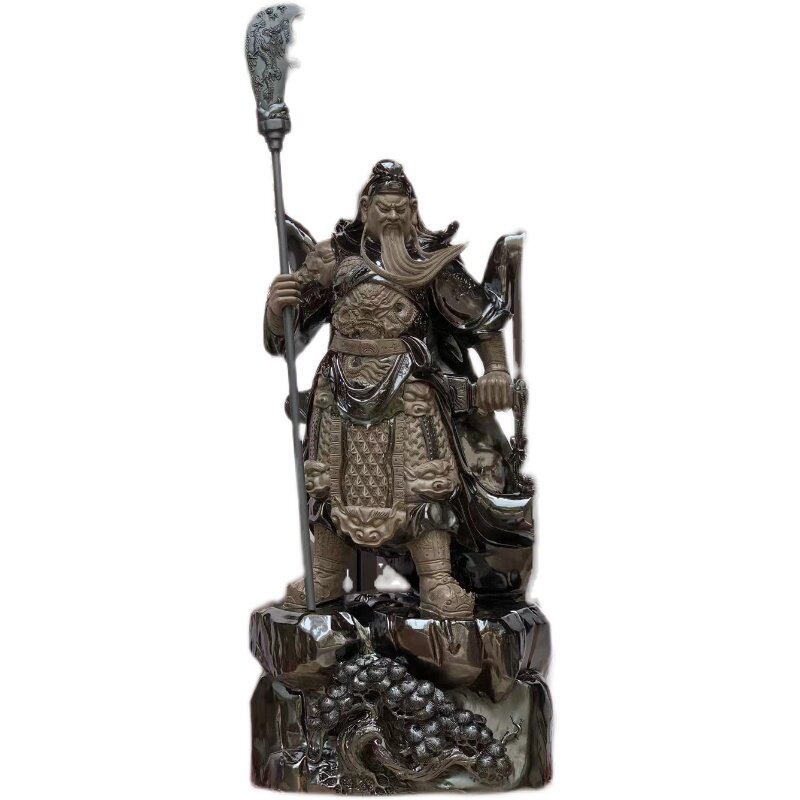 Spot Wu Caishen Guan Gong ornaments living room ebony wood carving crafts solid wood hand-cleaning knife 55×40×142