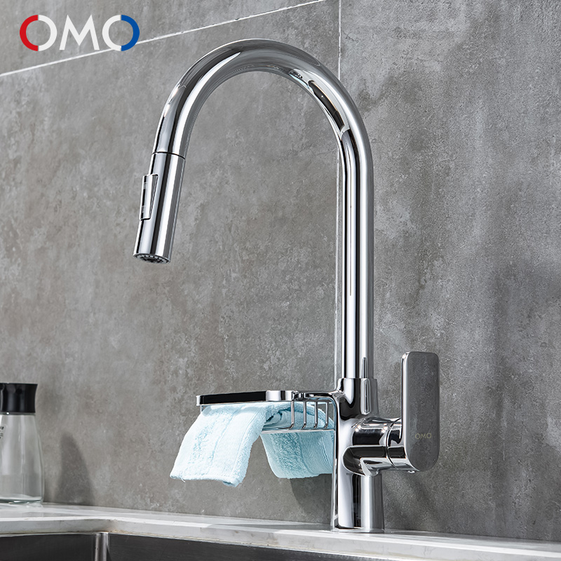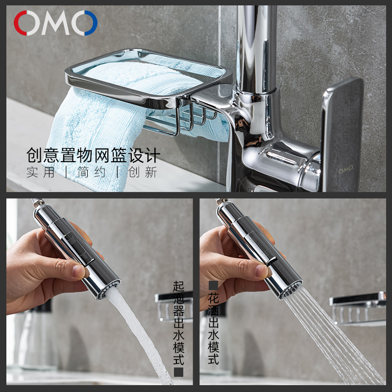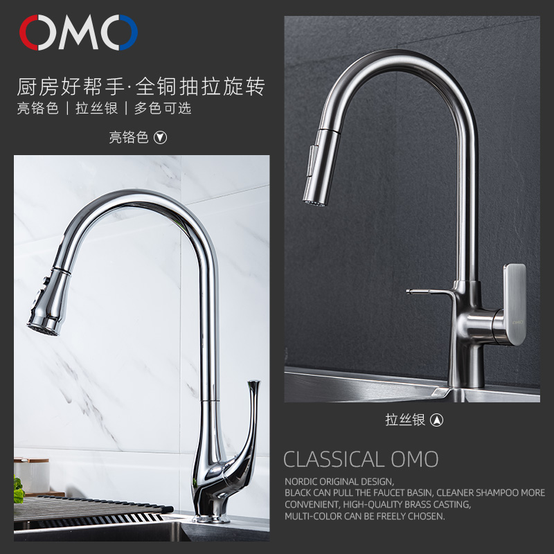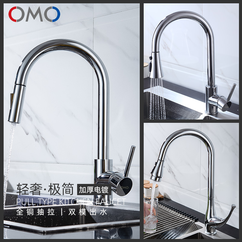 OMO All-copper Kitchen Cold and Hot Tap Pull-pulled Reduced Dishwasher Dishwasher Tank Rotating Home Faucet