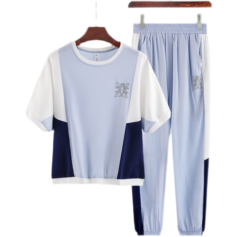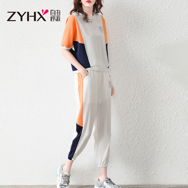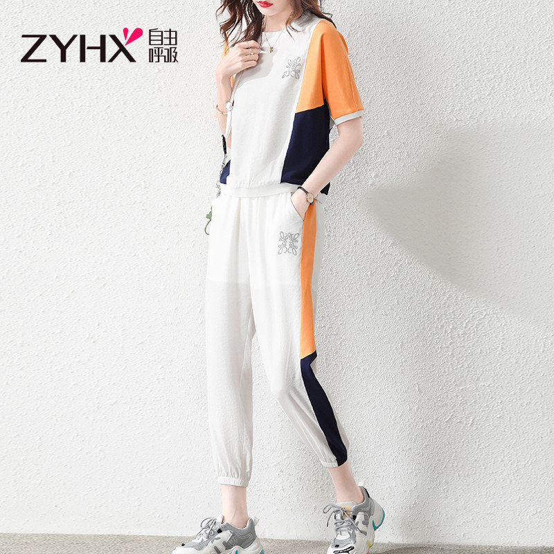 Free Suction Sportswear Suit Women Summer Slim 2022 Chauder Fashion Mom Casual Minus age Short sleeves Two sets