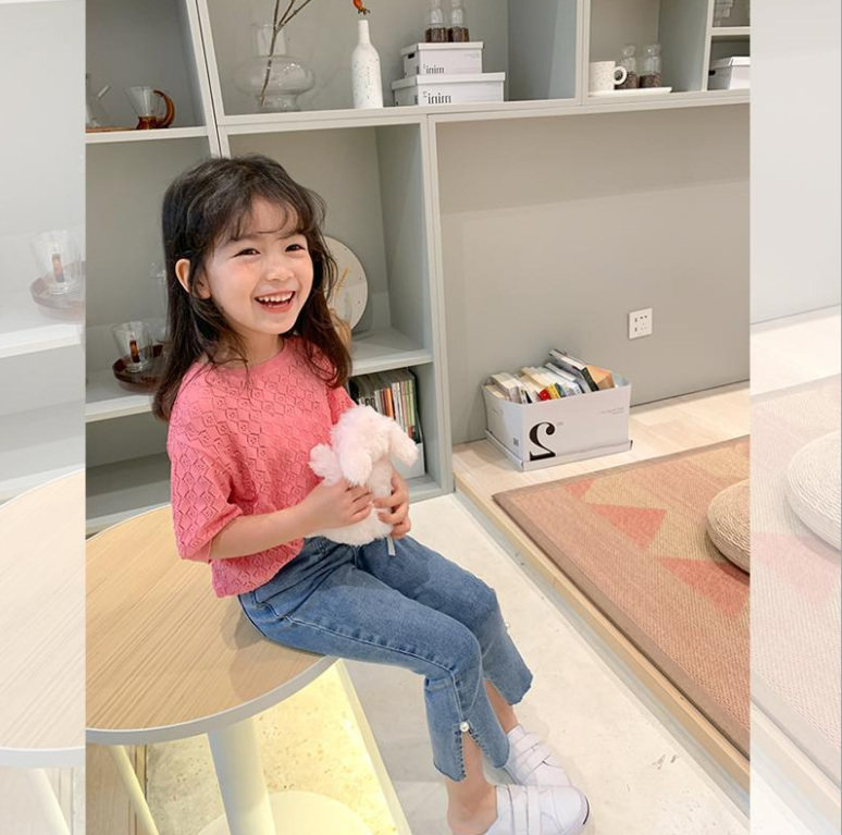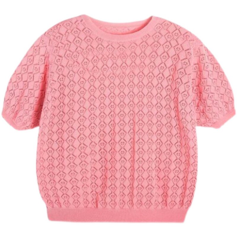Girl hollow short sleeve T-shirt thin summer wearing baby gas ice wire knitting sweet wearing knitted shirt