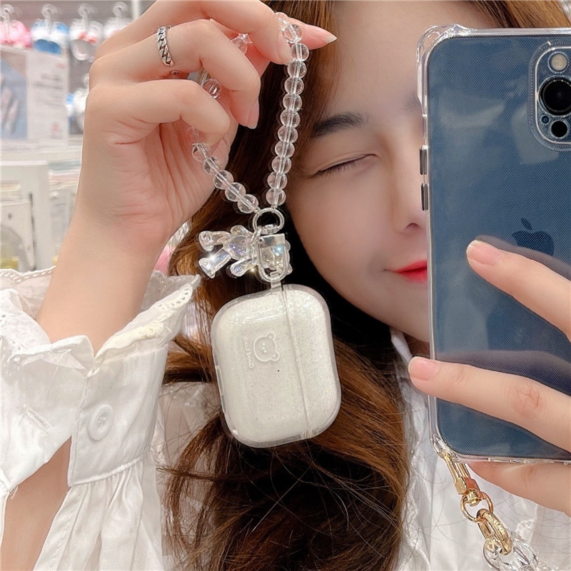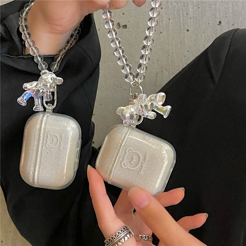 ins transparent glitter lucky bear Airpods2 protective sleeve suitable for Pro3 generation Apple earphone soft shell pendant