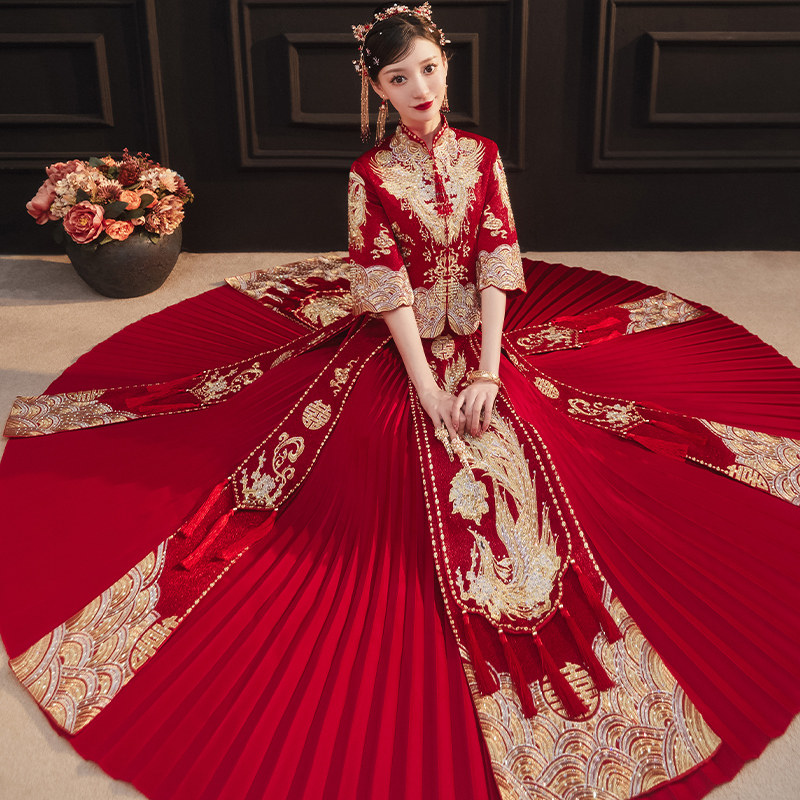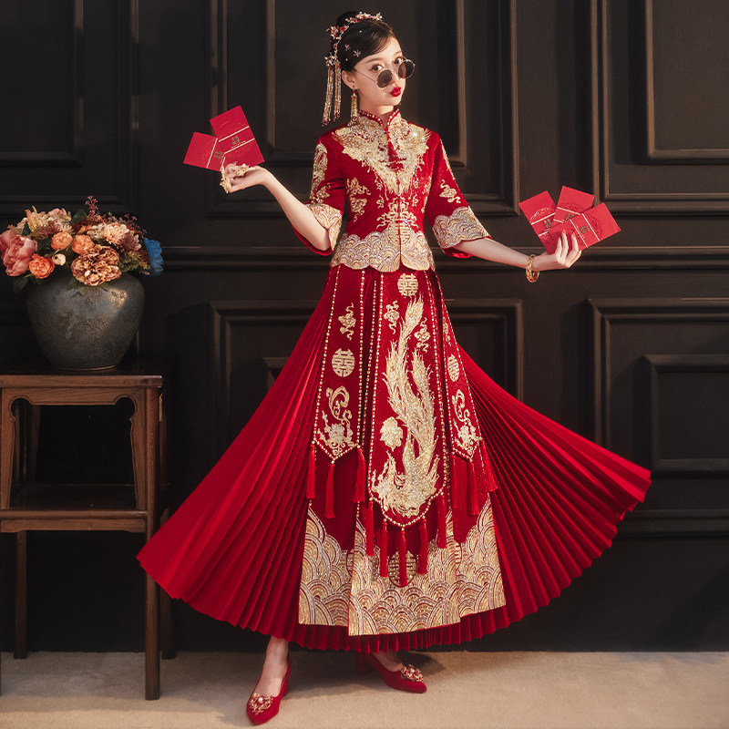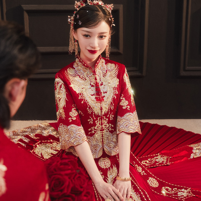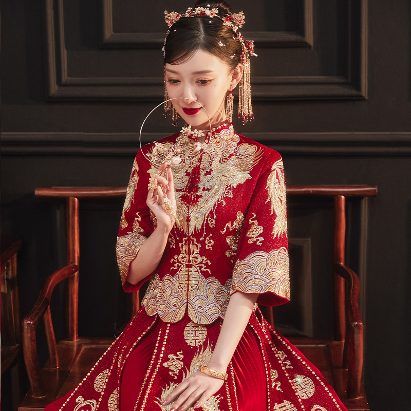 Long-sleeved embroidery Phoenix without diamonds Long-sleeved embroidery Phoenix hot diamond seven-point sleeve embroidery Phoenix without diamonds Seven-point sleeve embroidery Phoenix hot diamond embroidery Phoenix without diamonds send red beads headdress embroidery Phoenix hot