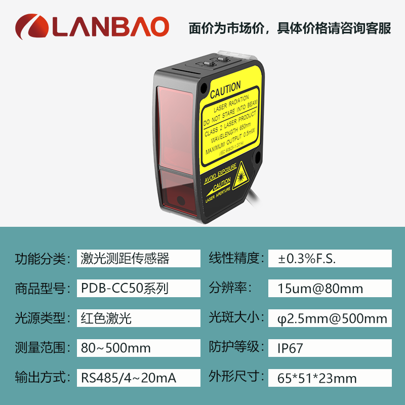 Lanbao PDB-CC50DGR laser ranging sensor RS485 output IP67 waterproof button setup