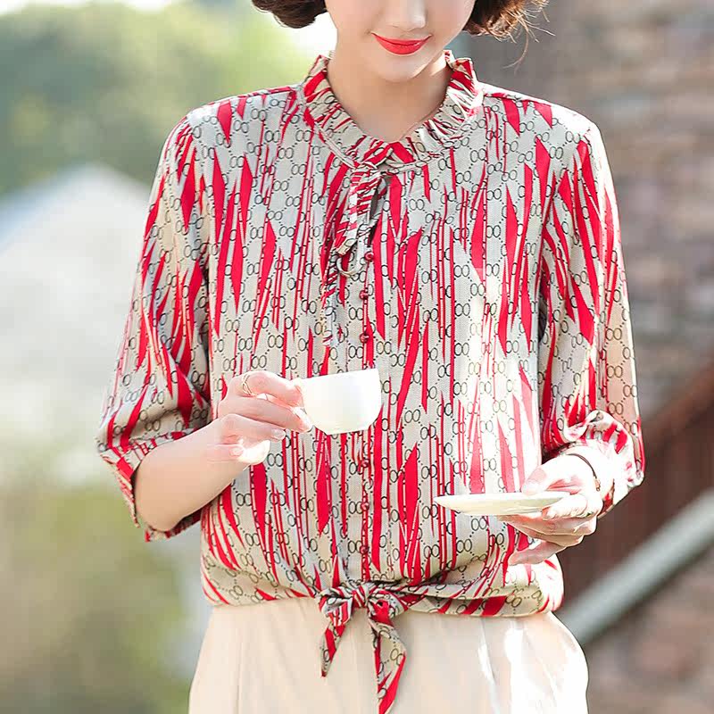 Short-sleeved t-shirt women's 2021 new middle-aged mother T-shirt summer t-shirt casual design short chiffon top women's