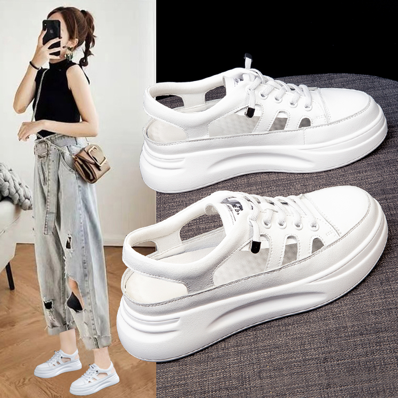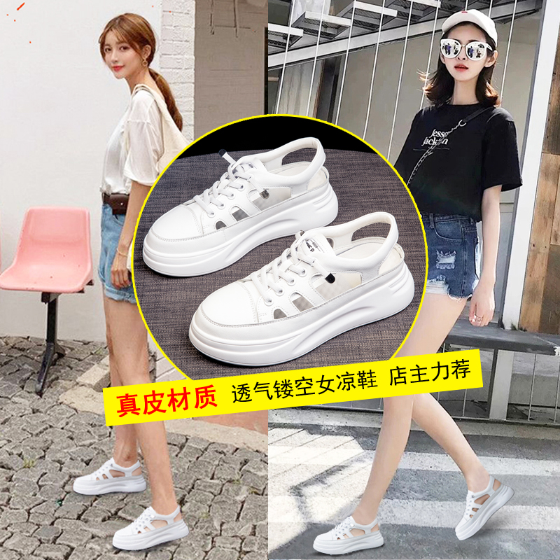 Baotou thick bottom sandals women's summer 2022 new net red leather soft bottom hollow flat casual white shoes