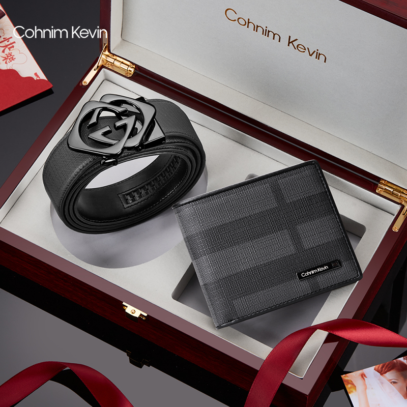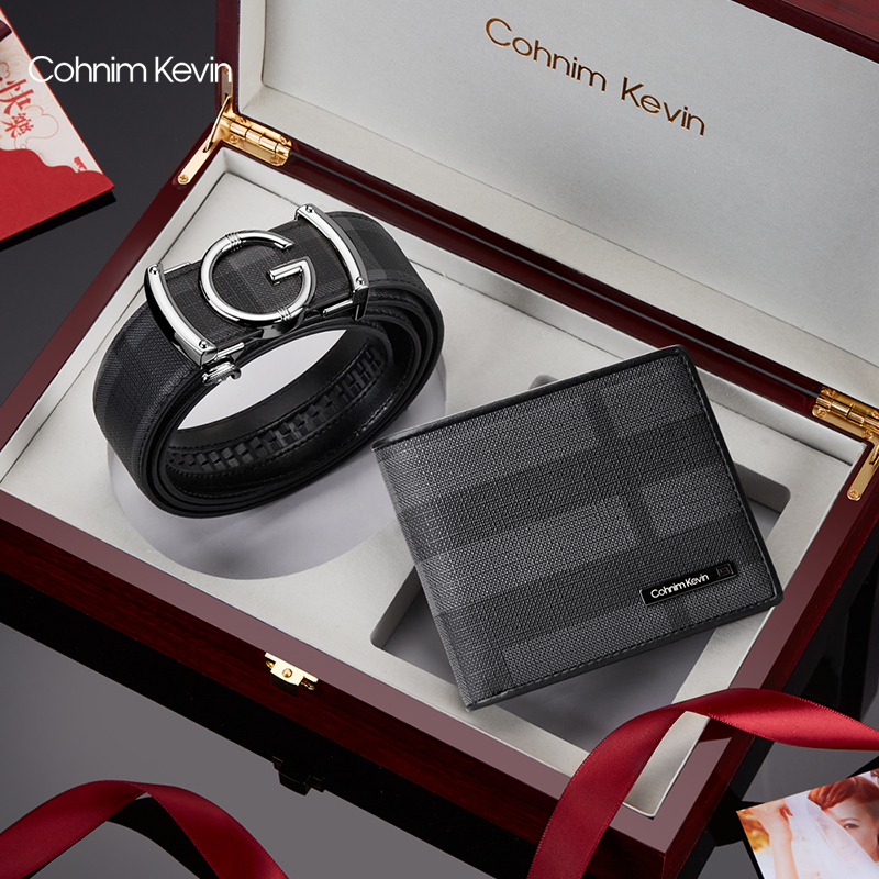 Cohnim Kevin wallet men's genuine cowhide short belt gift box set men's 2022 new birthday gifts