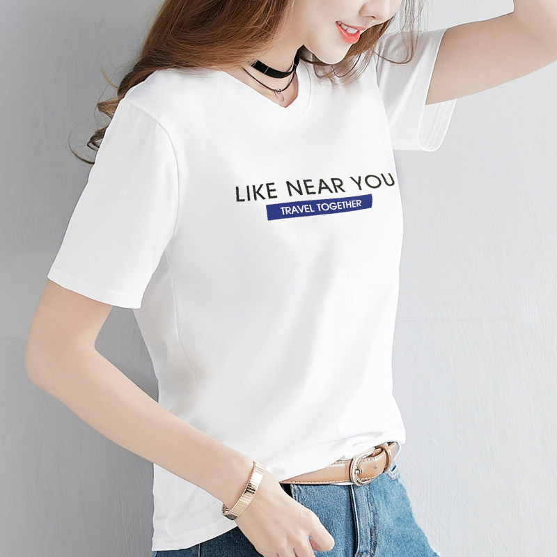 2021 summer dress new Han Fan Yang style wild beautiful t-shirt women's short-sleeved letter printing half-sleeve white top