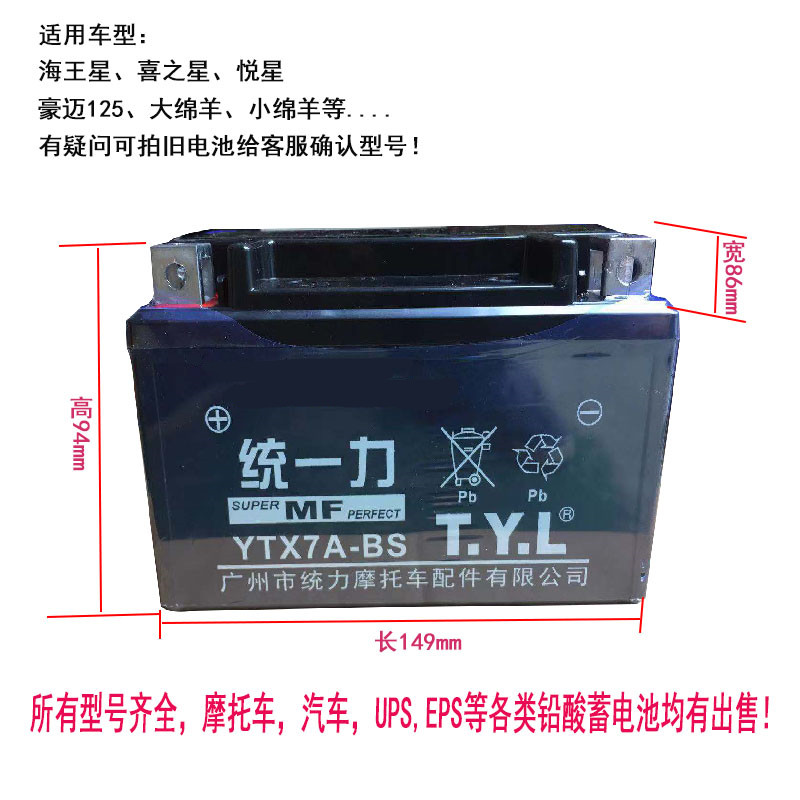 Unity power motorcycle battery TYL maintenance-free dry battery Curved beam pedal tricycle 12V universal battery