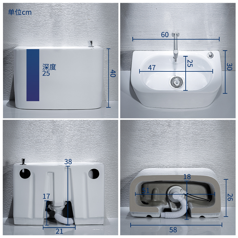 Extended washing mop pool home balcony bathroom basin mop pool extra large tank pool 60CM can be side row
