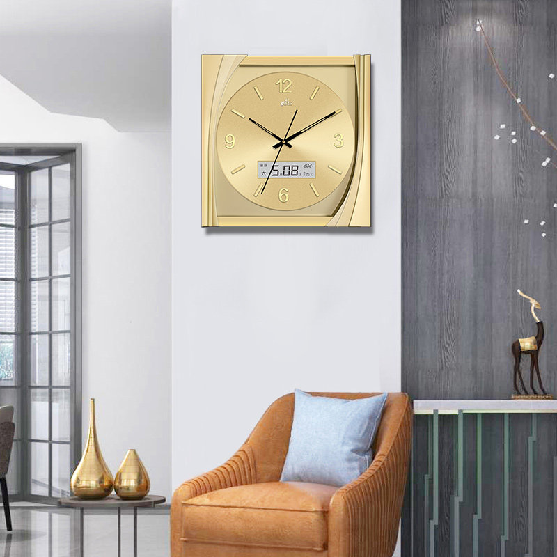 Hanging Clocks Living-room Watches and clocks Home Modern minimalist High-end Square Clock Creativity Perpetual temperature silencing quartz clock