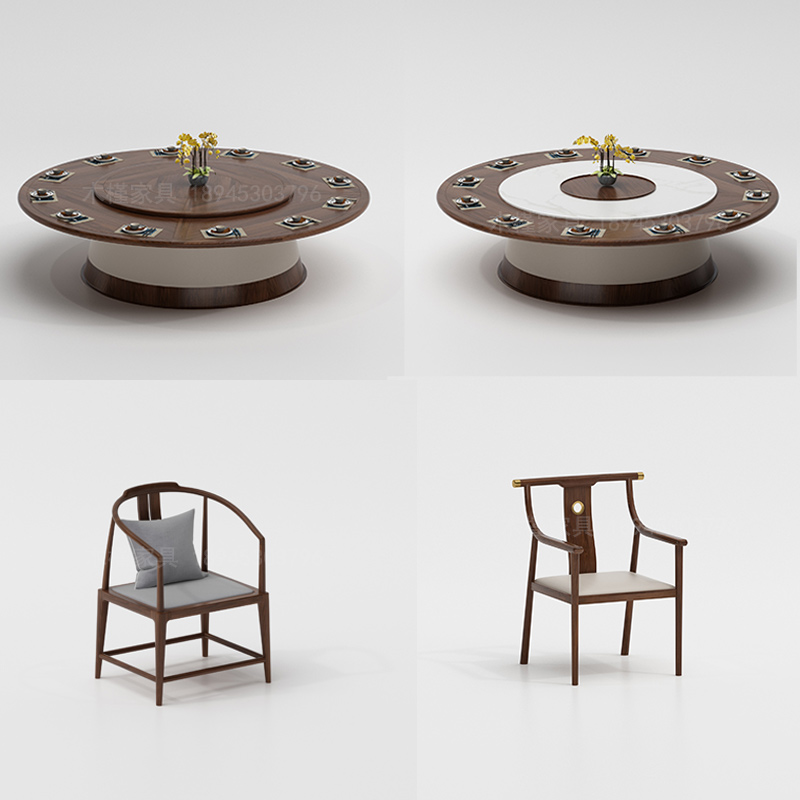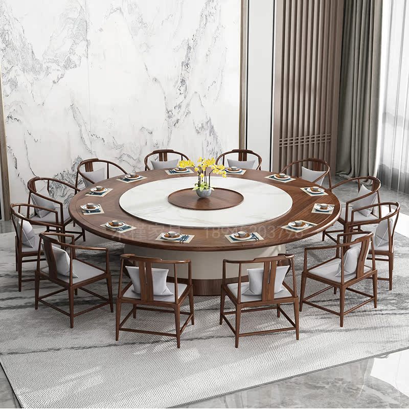 New Chinese-style solid wood hotel dining table and chair combination 15 people large round table automatic turntable electric box restaurant hot pot table