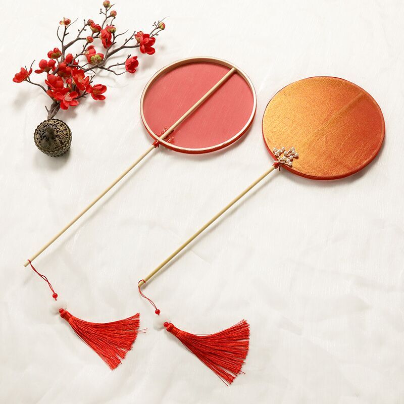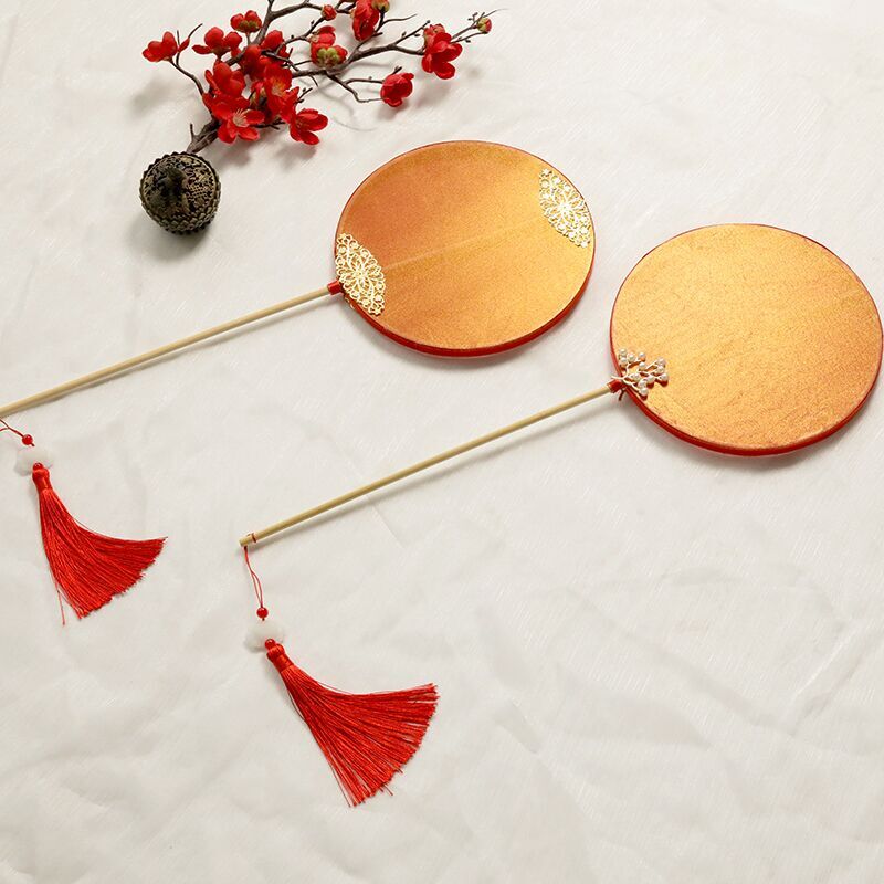 Palm fan Fan Scouts Clear Water River Dance Props Fan Scalding Gold Hanfu Comeback Ancient Round Fan Length Handle Ancient Wind Regiment Fan