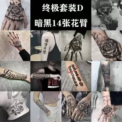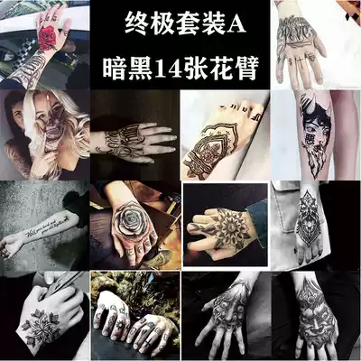 Tattoo patch waterproof male long-lasting hand back finger simulation tattoo Dark Flower hand semi-permanent disposable arm
