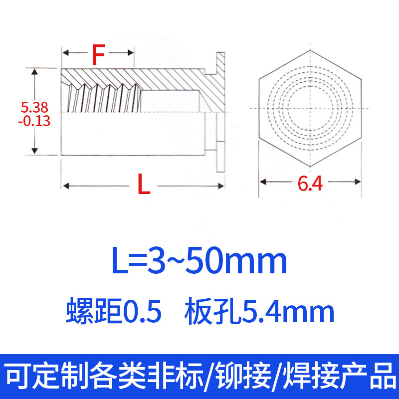 Blind hole press riveting stud nut column press riveting screw sleeve bso-M3 bso-M3 M2 M2 M3 M3 5 bottom hole 5 4