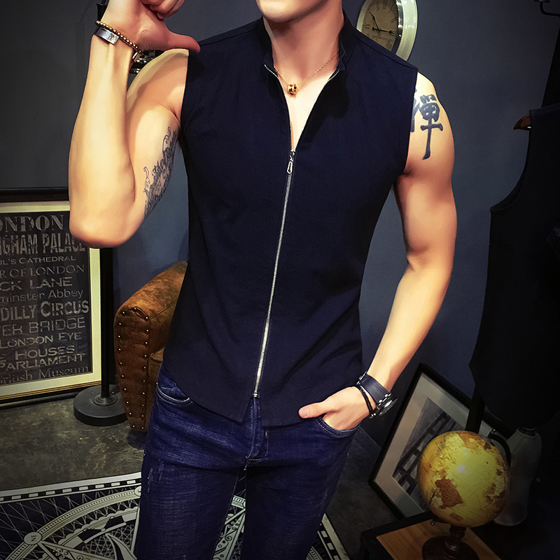 Sleeveless t-shirt men's summer thin section self-cultivation casual men's stand-up collar vest vest tight-fitting trendy handsome men's fashion