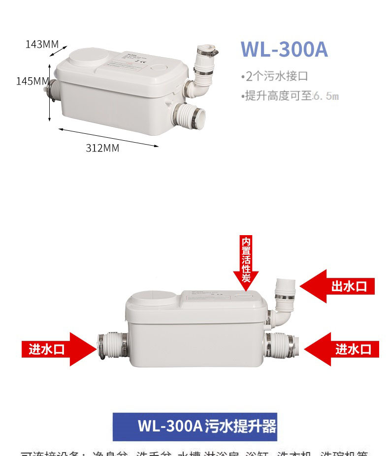 WL300A shower models upgrade commercial boost 8 m upgrade commercial lift 9 5 m upgrade commercial lift 12 m