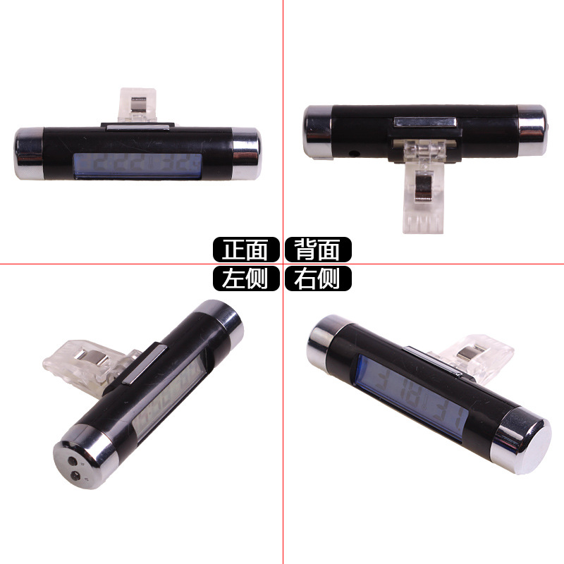 Automotive supplies K01 air outlet thermometer electronic clock two-in-one LED digital thermometer blue backlight