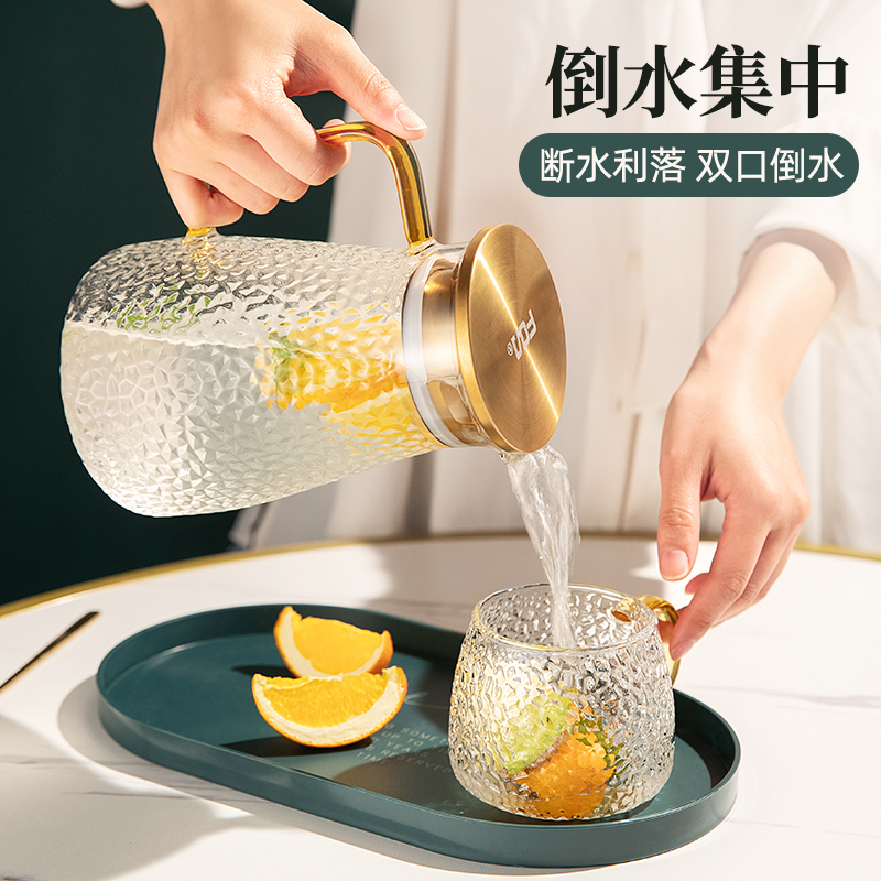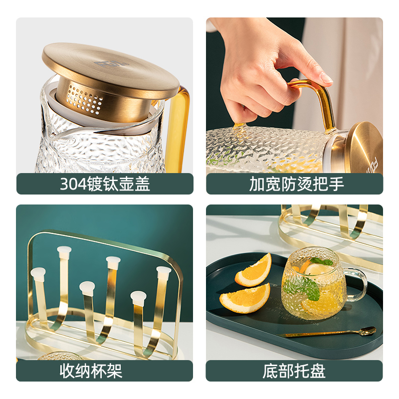 Rich Light Cold Kettle Glass Kettle Household Teapot Heat Resistant Large Capacity Cool White Open Water Cup Suit Juice Cold Kettle