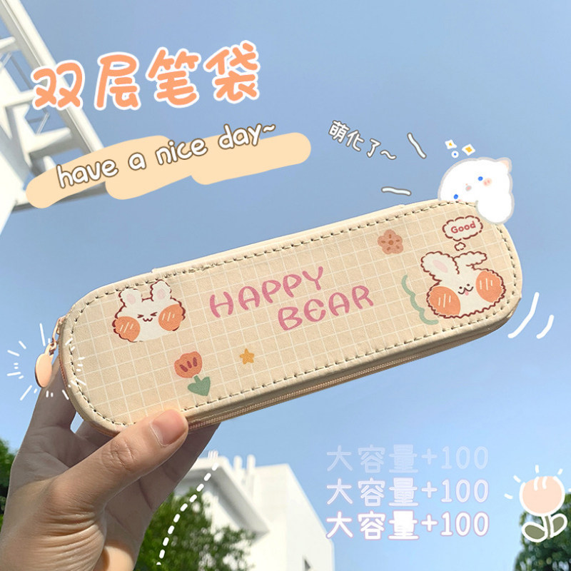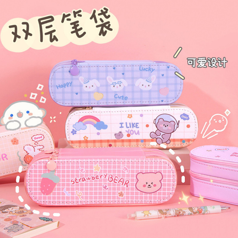 Double-layer pen bag Rainbow Bear free 2 ballpoint pens Double-layer pen bag Shake Rabbit free 2 ballpoint pens Double-layer pen bag Pink Bear free 2 ballpoint pens Double-layer pen bag Study hard and get 2 ballpoint pens Double layer