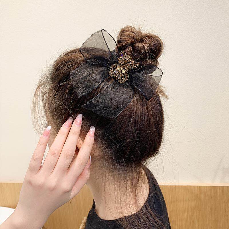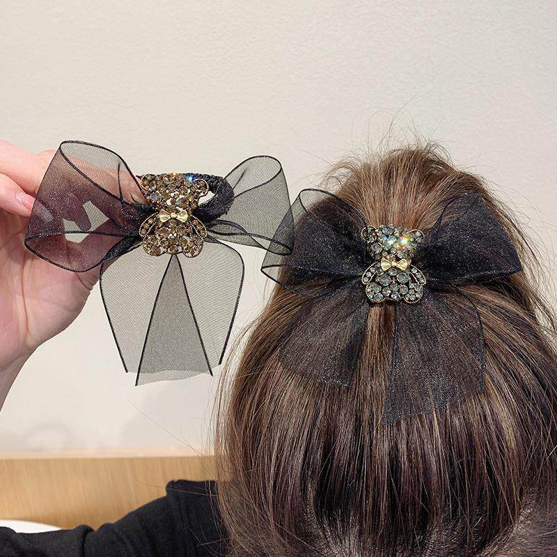 Delicate Bear Temperament Butterfly Knot Hair Ring Women Zama Tail Net Red Pill Hair Circle Brief 2021 New leather gluten