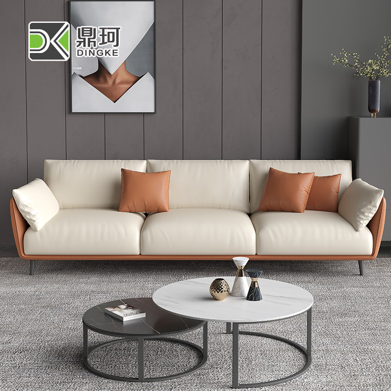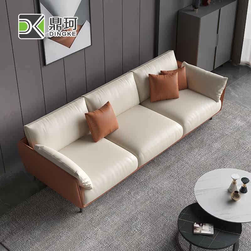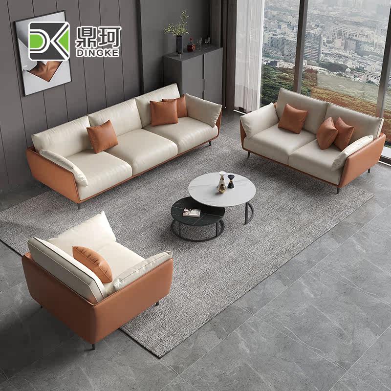 Italian Real Leather Office Sofa Trio Bits Business Lounge Office Sofa Tea Table Portfolio Brief Modern