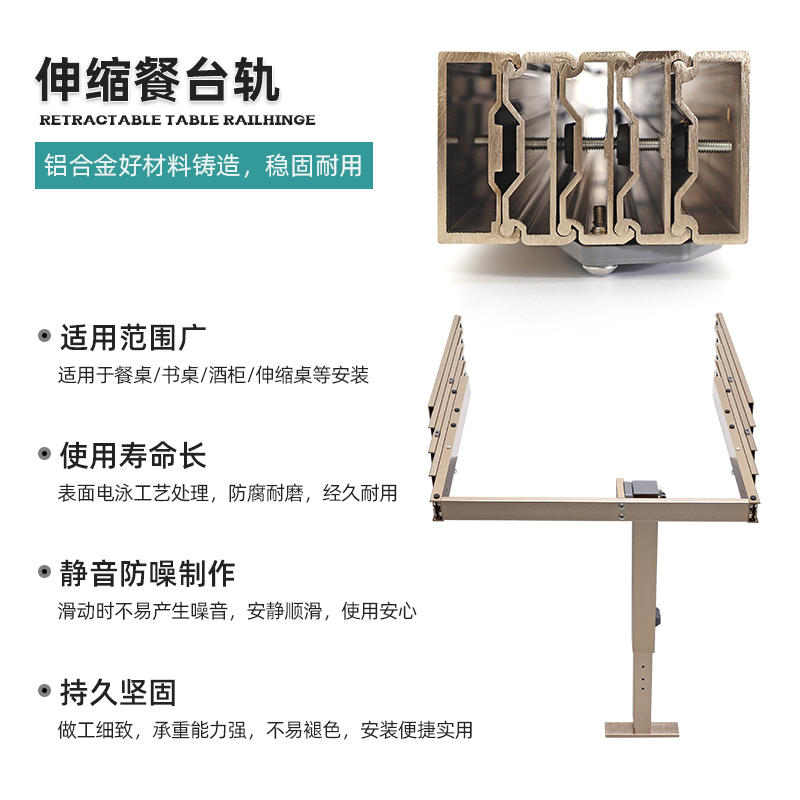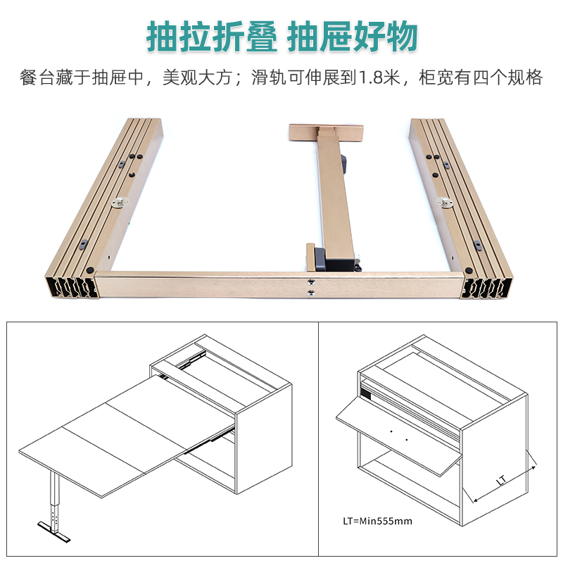 The whole cabinet hides the side table telescopic dining table slide rail drawer extension folding table top pull-out guide rail hardware accessories