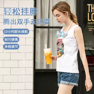 Hanging neck small fan Portable mini lazy hanging neck neck turbine leafless USB mute rechargeable portable small student kitchen net celebrity children's refrigeration air conditioning fan big wind WEKOME