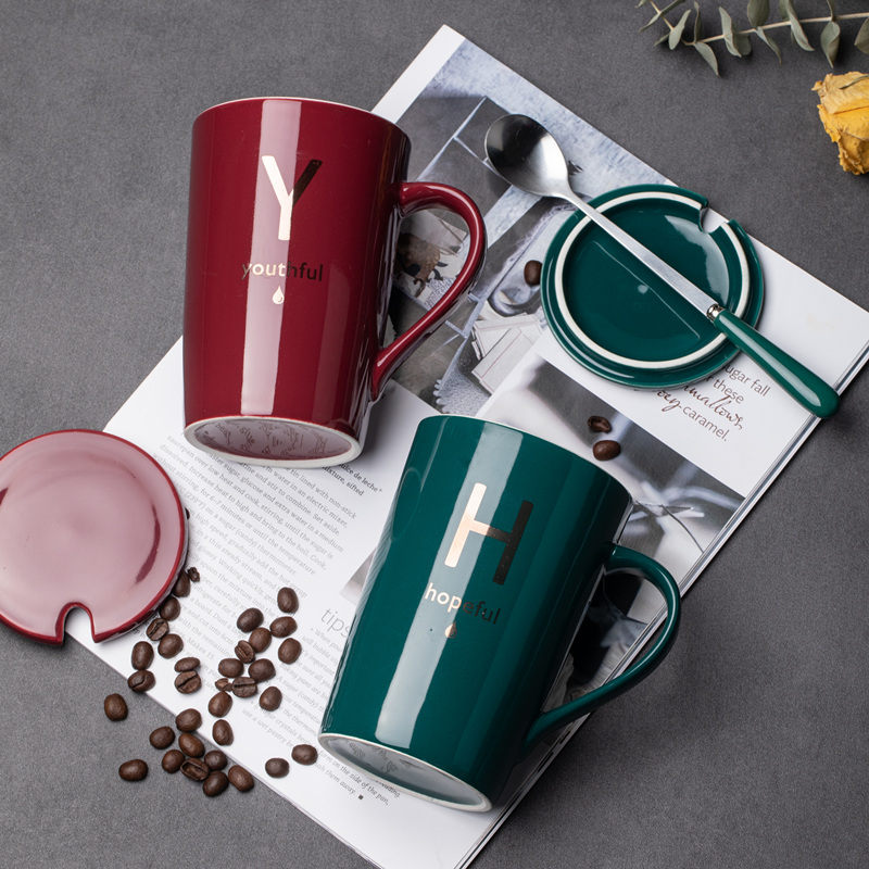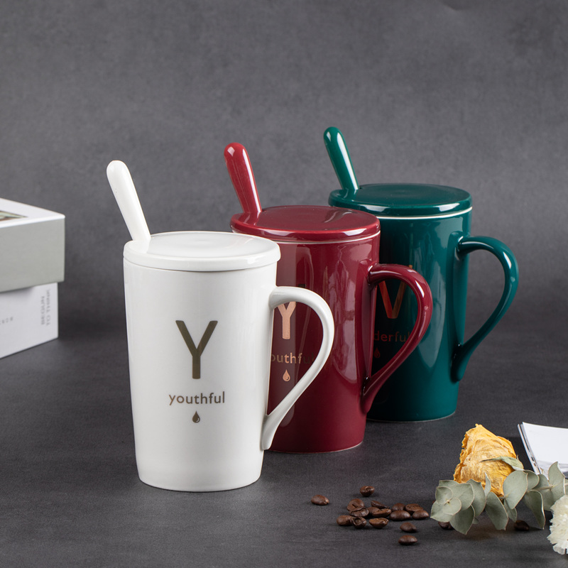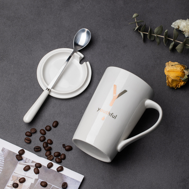 Creative breakfast cup ceramic mug with lid spoon personality trend drinking water Cup household Coffee Cup for men and women teacup