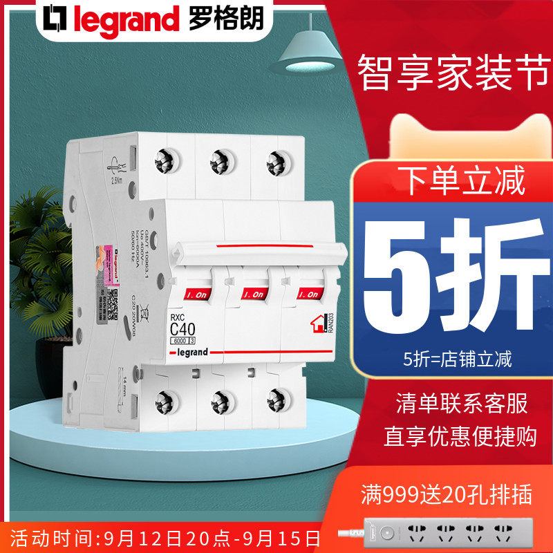 TCL Legrand small circuit breaker 3P air switch 3P40A household 3-pole short circuit protector without leakage protection