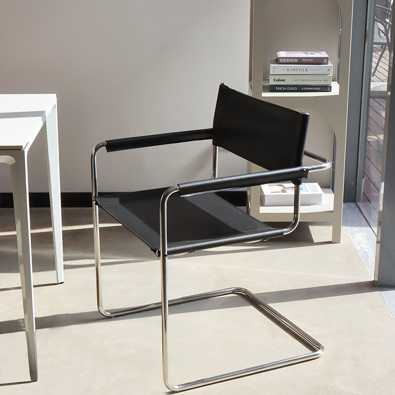 Youni ) Retro Angshan Level Armchair Middle Ancient Designer Stainless Steel Backleather Catering Chair