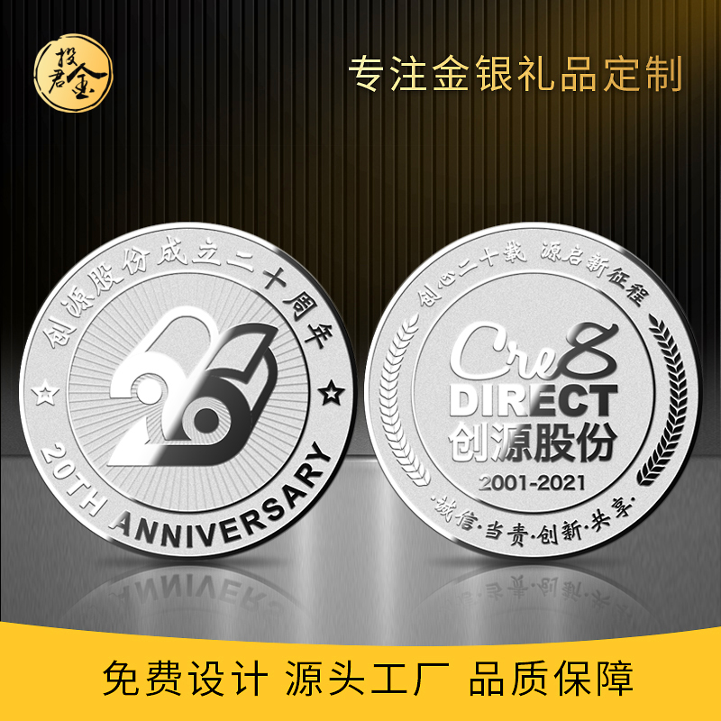Silver Coin Customized Enterprise Annual Celebration Employee Awards Commemorative Badge For Retirement Remembrance Get-together 9999 Gold Coins Order