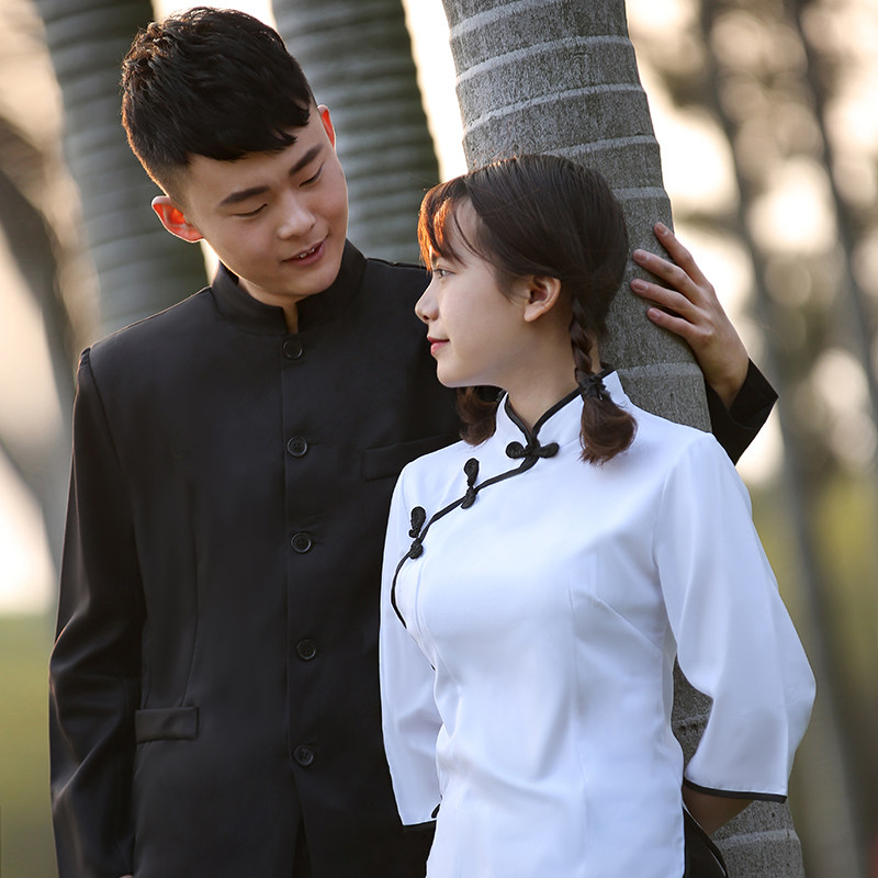 Rental Chinese tunic suit men's Republic of China style stand-up collar performance clothing May Fourth youth graduation season student class photo summer rental