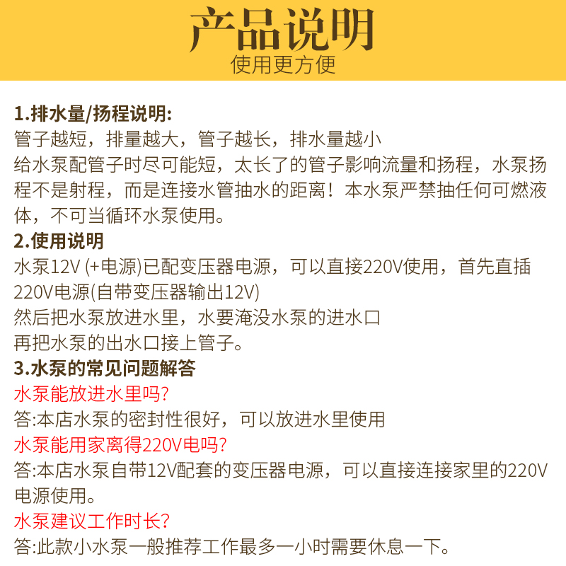 12V rhinestone pump (5m head not adjustable) 12V rhinestone pump (5m head adjustable pressure) water pipe 5m single purchase price