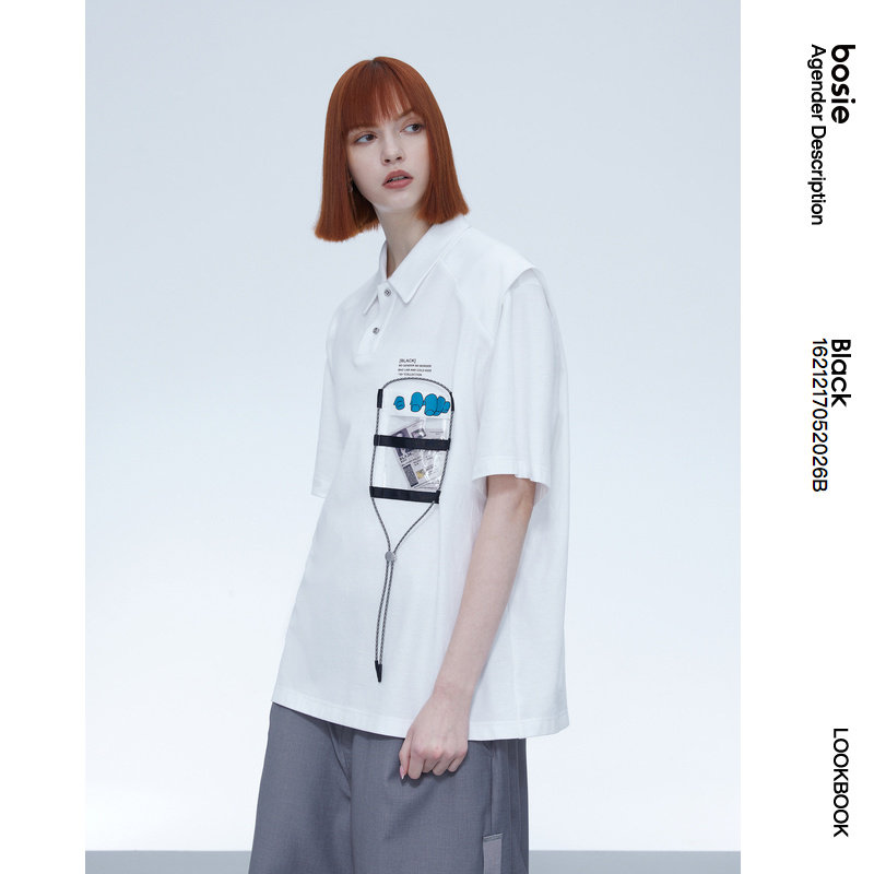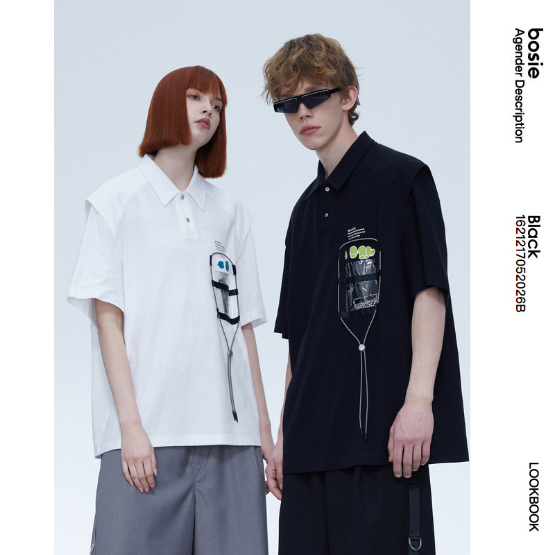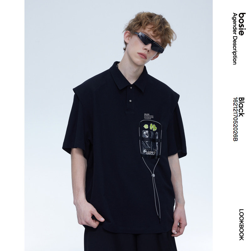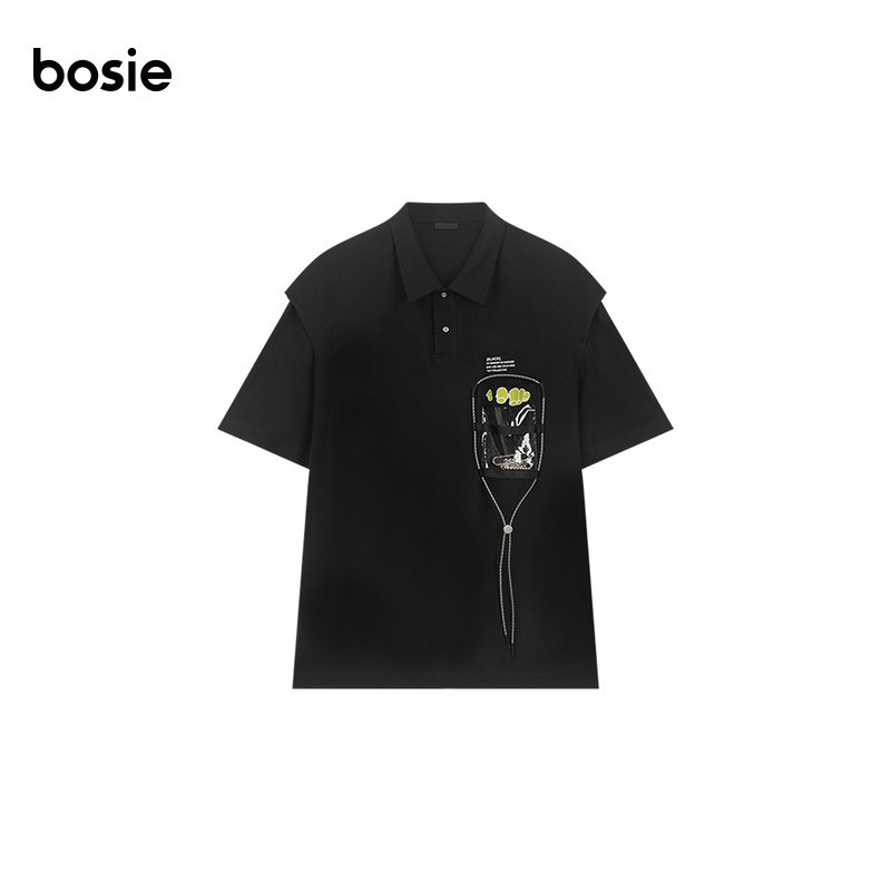 BLACK bosie solid color short-sleeved Polo shirt men 2021 summer new couple loose college wind top 2026B
