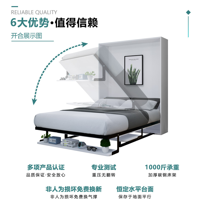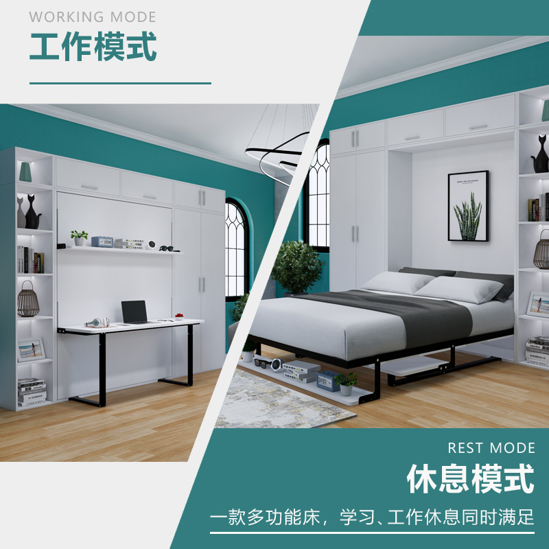 Invisible Bed Hide Folding Bed Desk Bookshelf Integrated Bed Five Gold Accessories Wardrobe Bed Murphy Bed Wall Bed Flap Bed