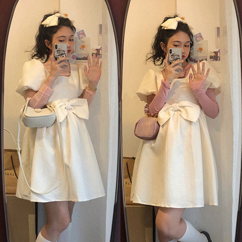 French retro gentle temperament first love design sense niche super fairy dress waist princess skirt chic summer