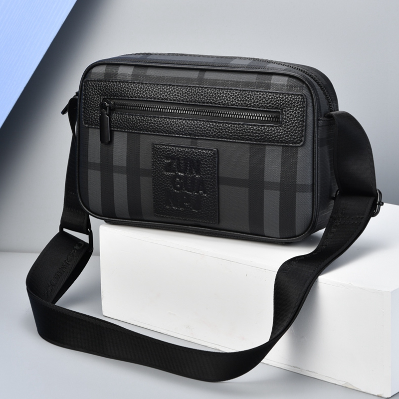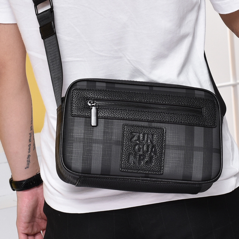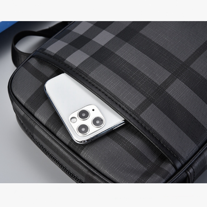 Hong Kong Male Bag New Plaid Diagonal Satchel Business Single Shoulder Bag Cross Section Casual Fashion Trend Bag Waterproof Bag